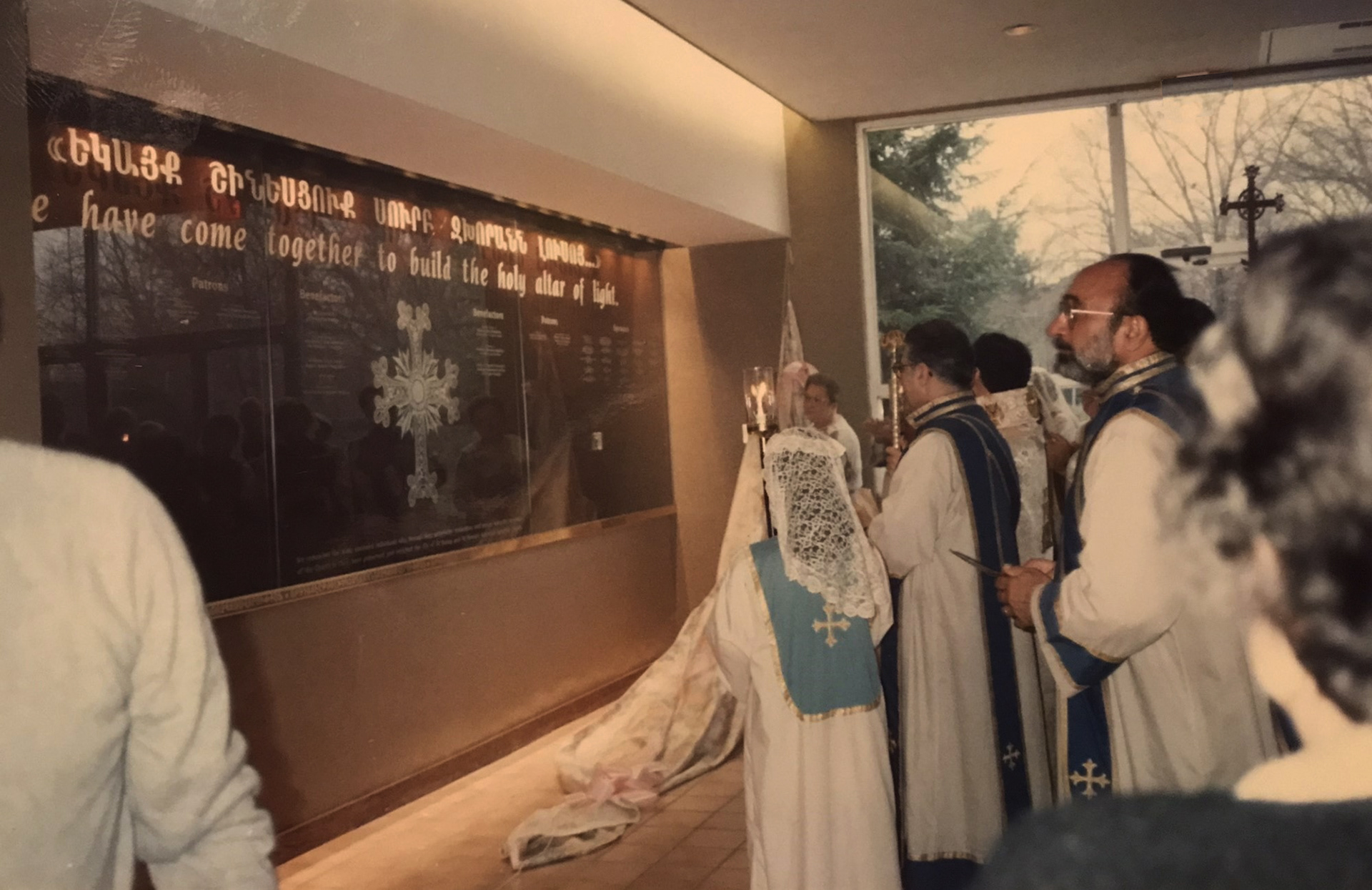 The 'plaque' idea is envisioned into a sculptural wall mural in St. Sahag and St. Mesrob Apostolic Church Memorial Hall