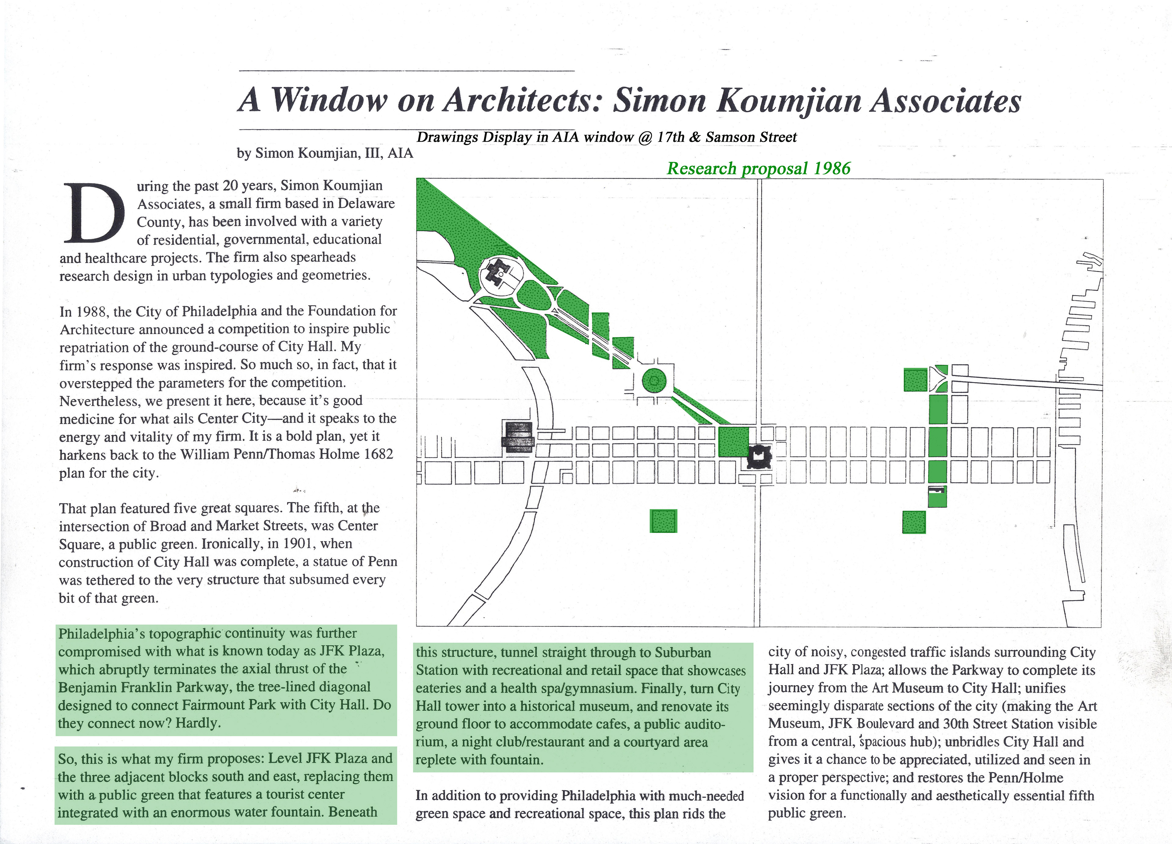Simon Koumjian Associates selected firm to display project(s) in the ground floor AIA architects window