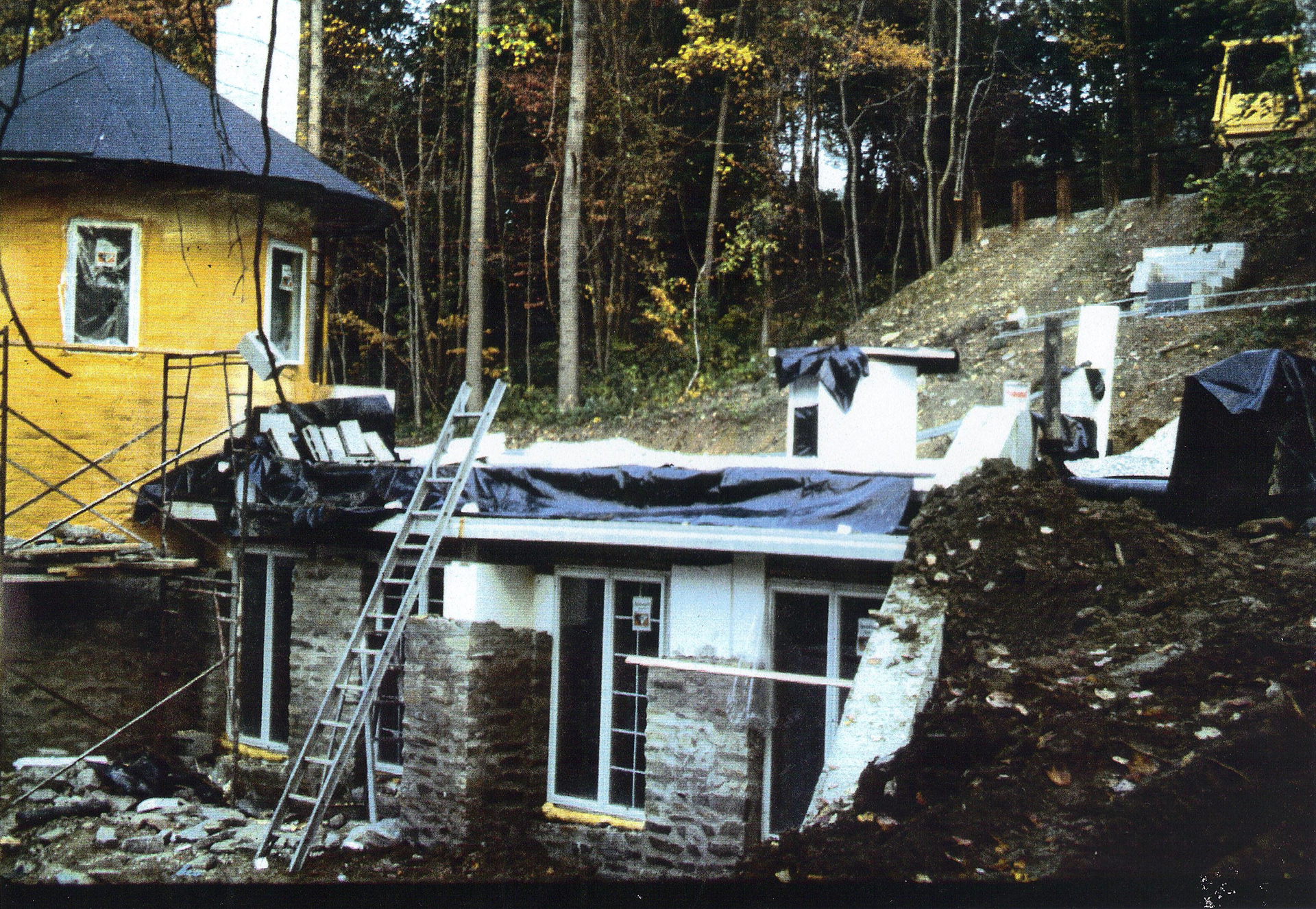 Located in Gladwyne, PA, a suburb of Philadelphia - the 3,600 sq. ft. residence was the first underground house to be built in Pennsylvania last century. The residence is set into the property’s north facing sloped hill bordering a flood plain, overlooking a luscious forest area. This site location and orientation prevented passive solar design, yet building underground still deserved serious consideration, despite the north facing site.