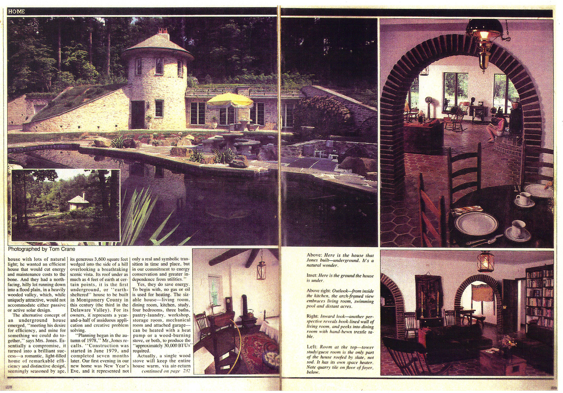 The choice in 1978 to live underground near Philadelphia, including giving up the use of oil and gas to heat the house was courageous and visionary for its time. Among several innovations, the air-tight wood burning stove worked efficiently with a reversible heat pump-for cooling during the summer using well water, which was then returned back into a stream-bed to recharge the water table.